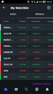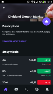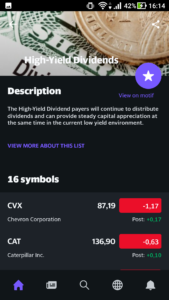 Dříve jsem používal do mobilu aplikaci Investování (Investiční centrum od České spořitelny), ale nově jsem přešel na Yahoo! Finance, kam jsem si přidal i celé portfólio. Výhoda této aplikace je že vše máte na jednom místě a když mám volný čas například při cestě autobusem, tak procházím čísla zajímavých společností. Na Yahoo! Finance jsou také různé seznamy (Lists) akcií a sledovat můžete jak si vedou.